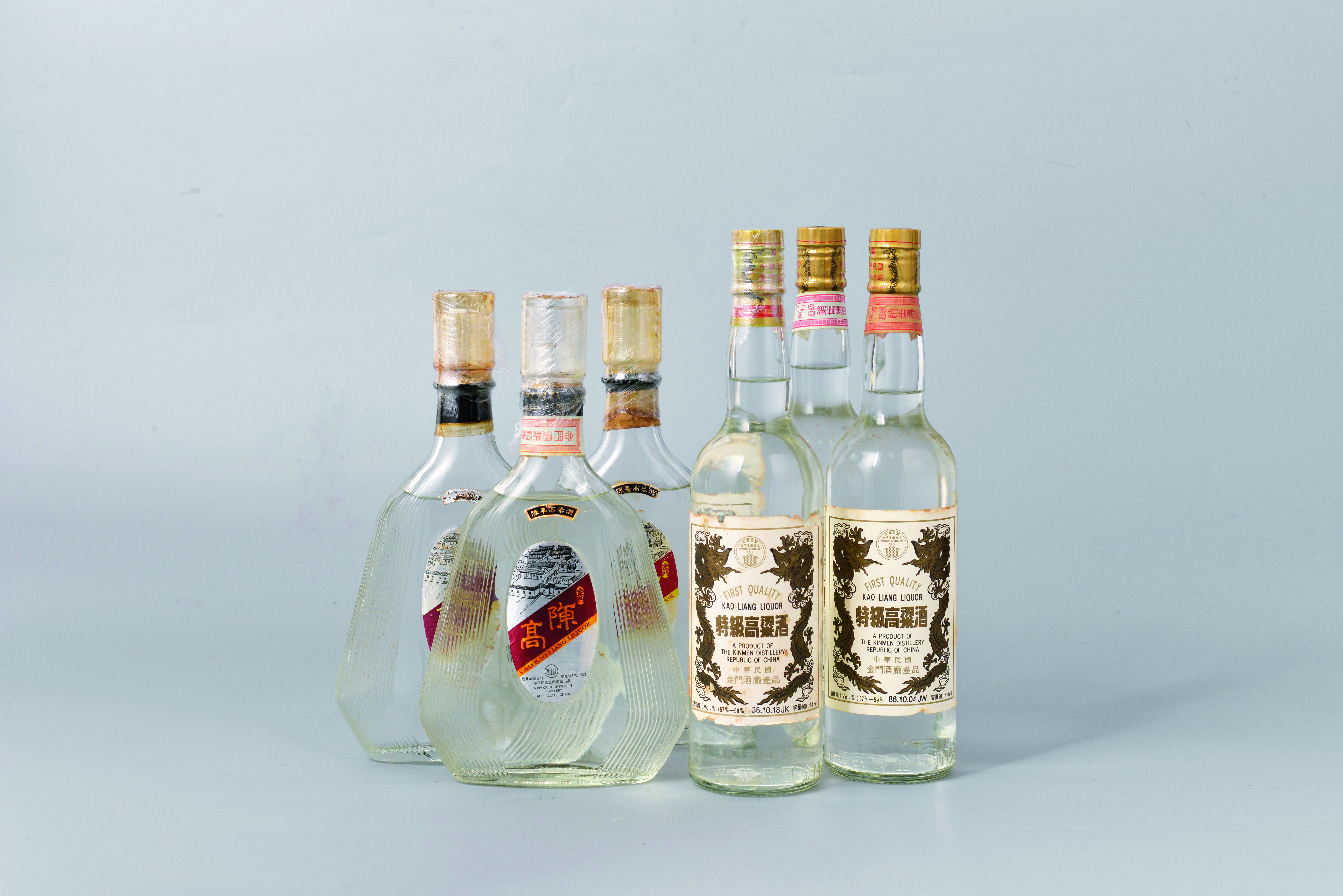 陳年高粱酒六隻 紅標78 年/83 年/72 年、白金龍86 年10 月三瓶