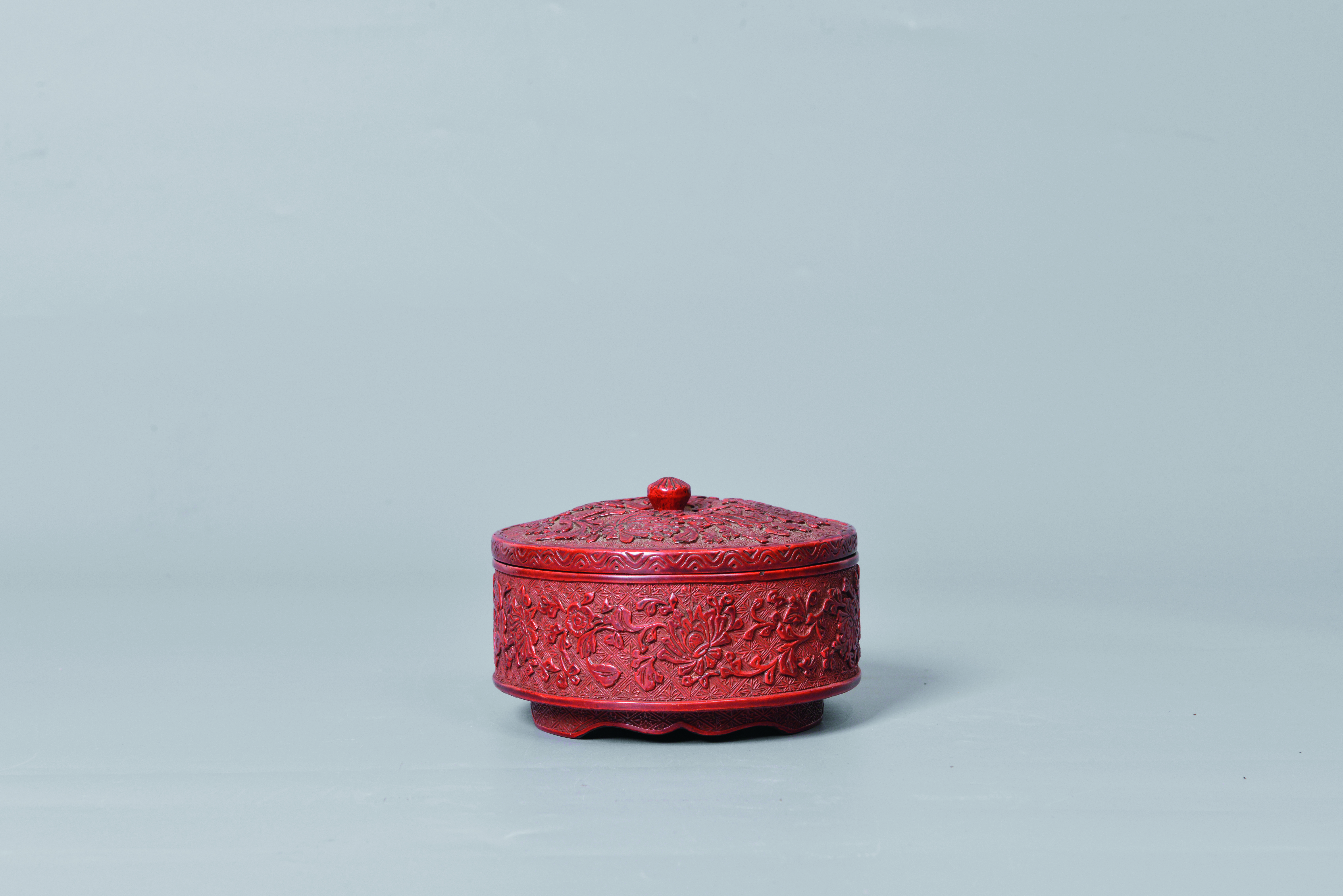清 浮雕纏枝菊剔紅紋漆盒