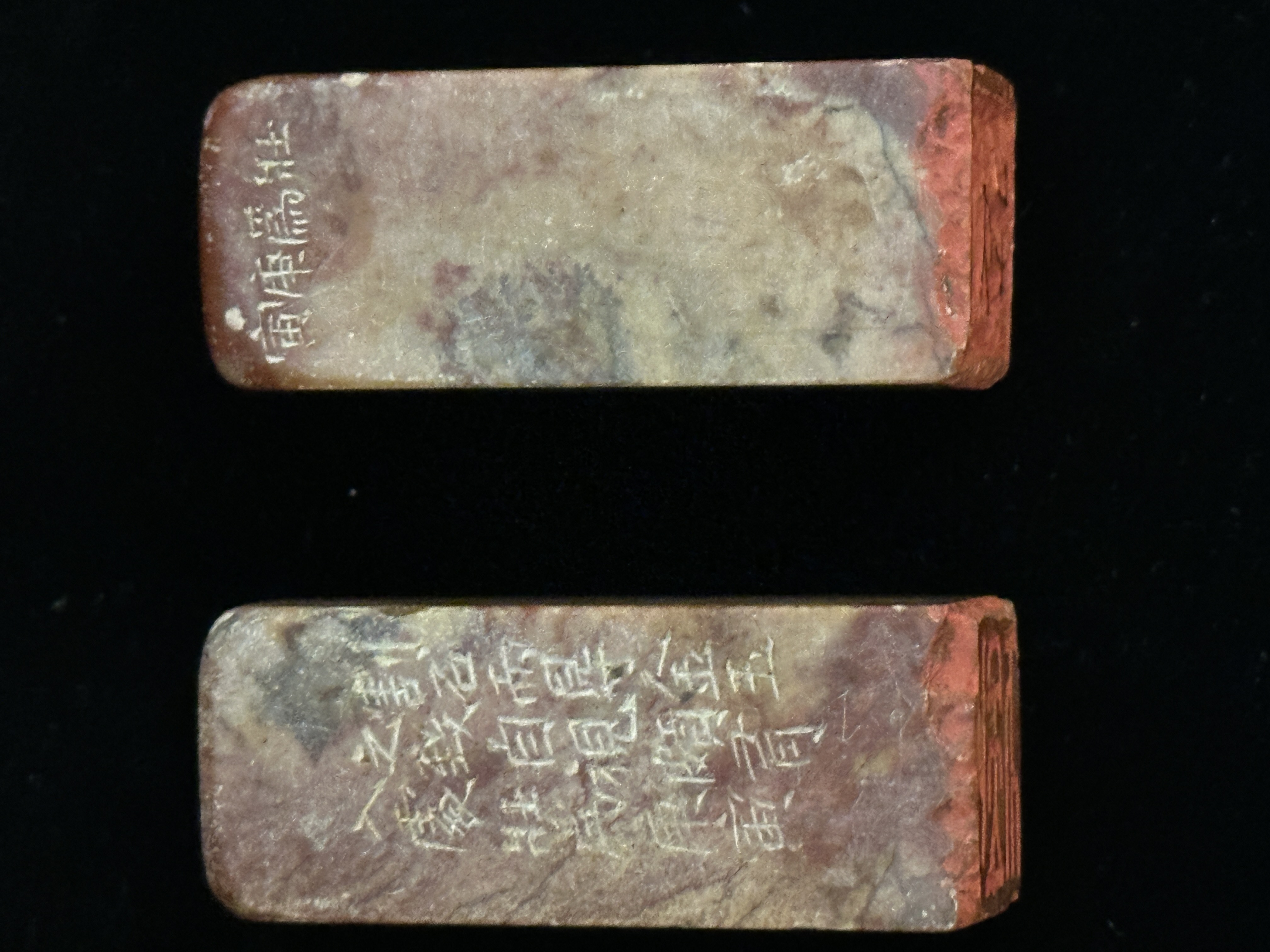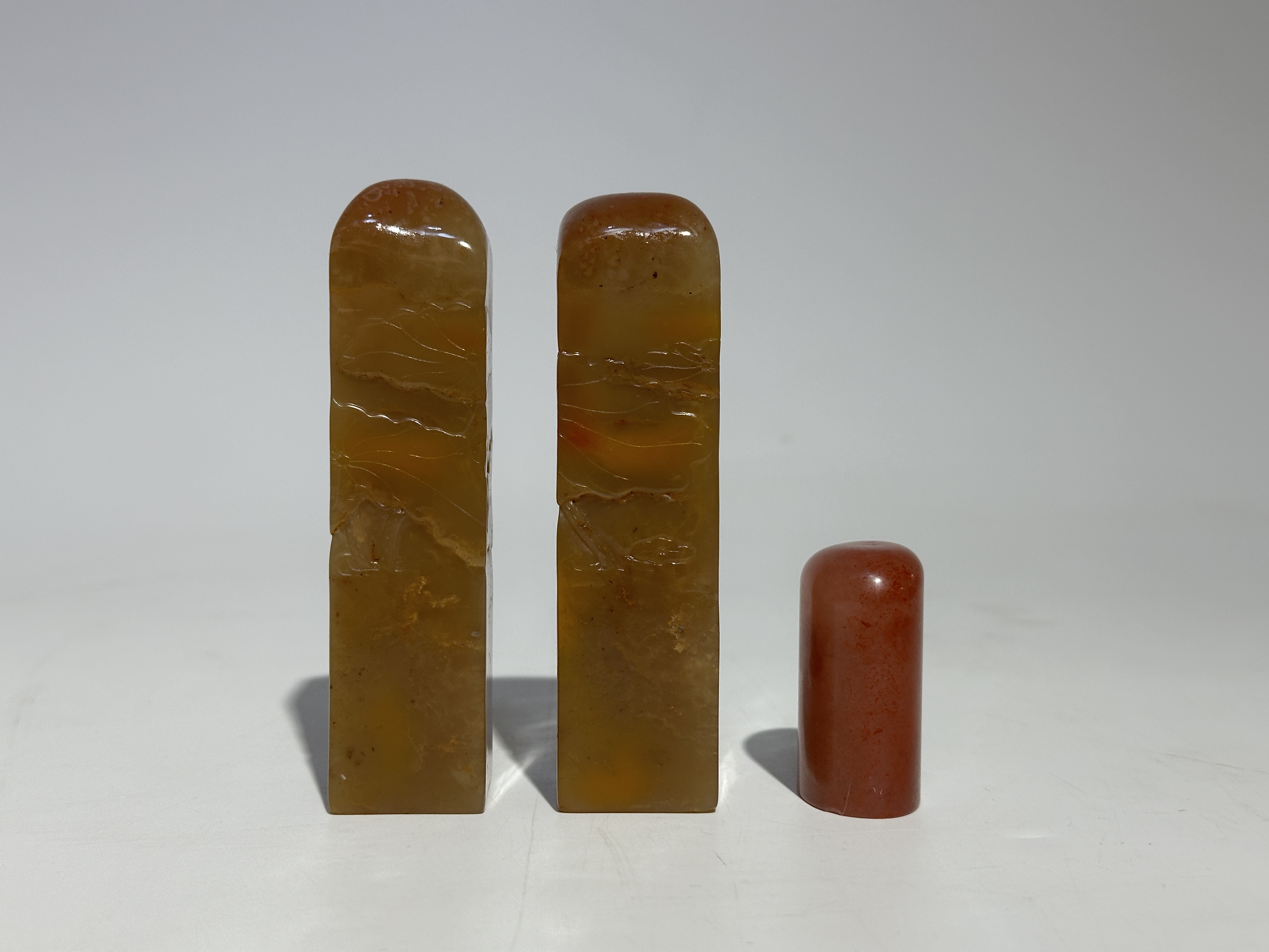 善伯凍石一對章/桃花凍一顆共三顆素章