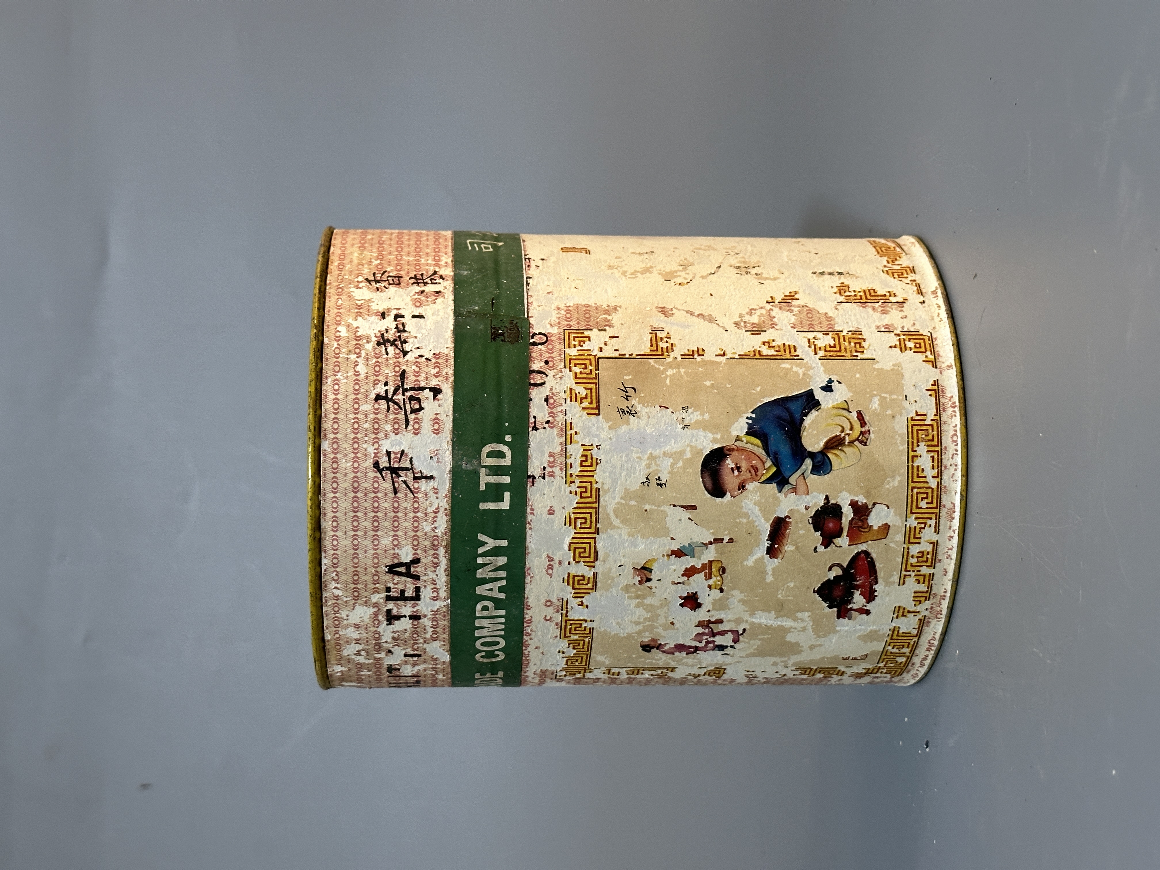 顏奇香茶莊創立於1928年,位於香港上環,是歷史悠久的潮州茶行。1970年代的「金冠茶王」多採用中式長筒圓柱狀的手工錫罐。錫罐氣密性極佳,蓋子放下時會因內部氣壓感慢慢下沉,確保茶葉在數十年間不會受潮。