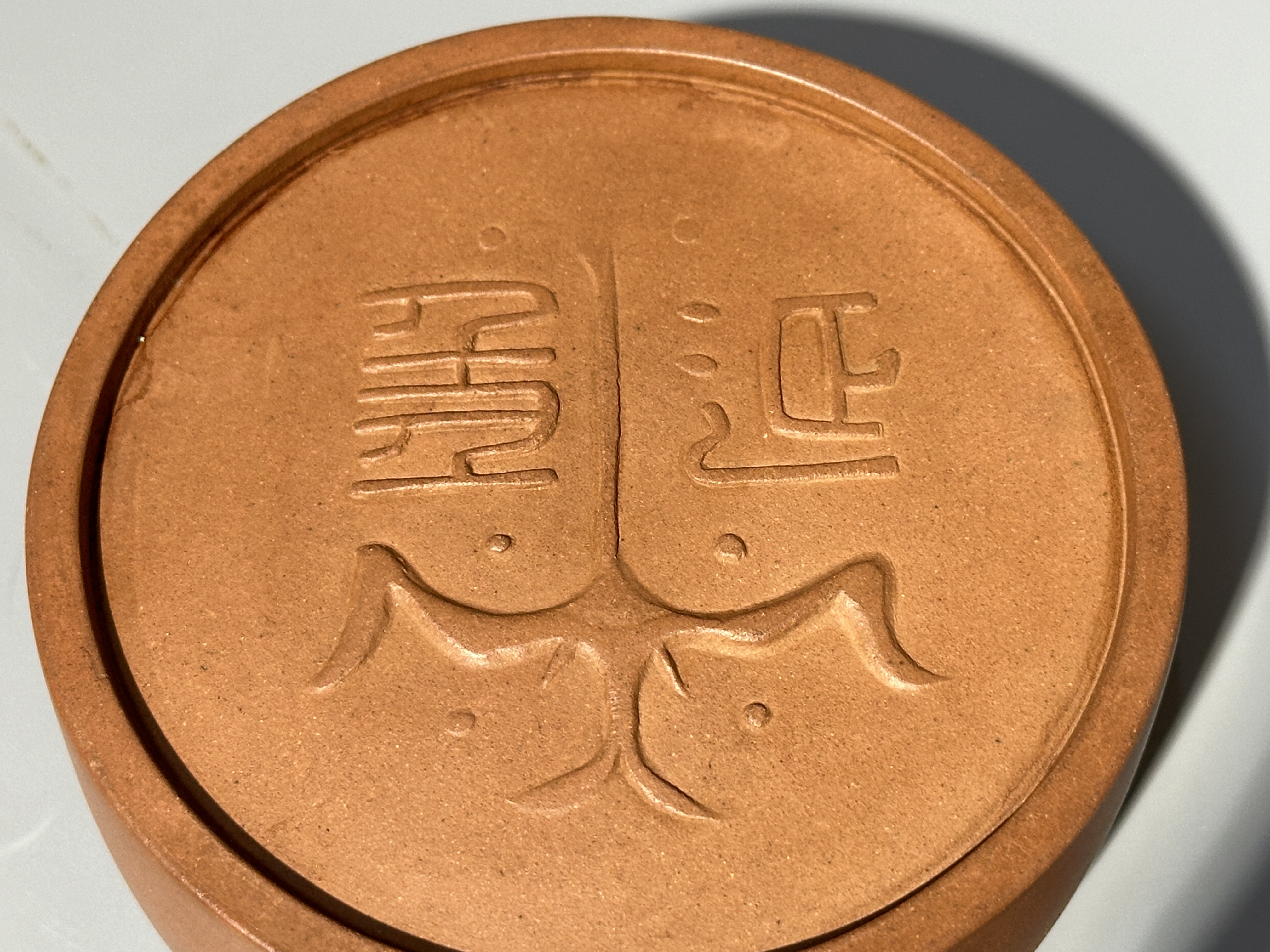 本件「飛鴻延年」壺,即為「曼生壺」中極具特色之名品。據《三輔黃圖》:「長樂宮有鴻台,秦始皇二十七年築,高四十丈,上起觀宇,帝嘗射飛鴻於台上,故號鴻台。」而作為西泠八大家之一的陳鴻壽,對金石之學見識廣博,頗有考究,其所創「飛鴻延年」款識,「延年」二字,字體在篆隸之間,下為一伸頸展翅之飛鴻,形象即為出自長樂宮鴻台觀宇之秦瓦。而壺底「飛鴻延年」款識周圍,左右各三,相對並列,共有六個乳丁圓點,有觀點認為取於《易經• 漸卦•第二爻》,「六二於磐」之卦,其曰:「六二:鴻漸於磐,飲食衎衎,吉。」意為鴻雁安居磐石,食物富饒,可得康健遐齡,福壽綿長。此紫砂壺扁長,泥色古樸,胎質溫潤,製作嚴謹,不僅線條流暢,造形端莊,更是體態飽滿,氣度渾厚,寓意吉祥。