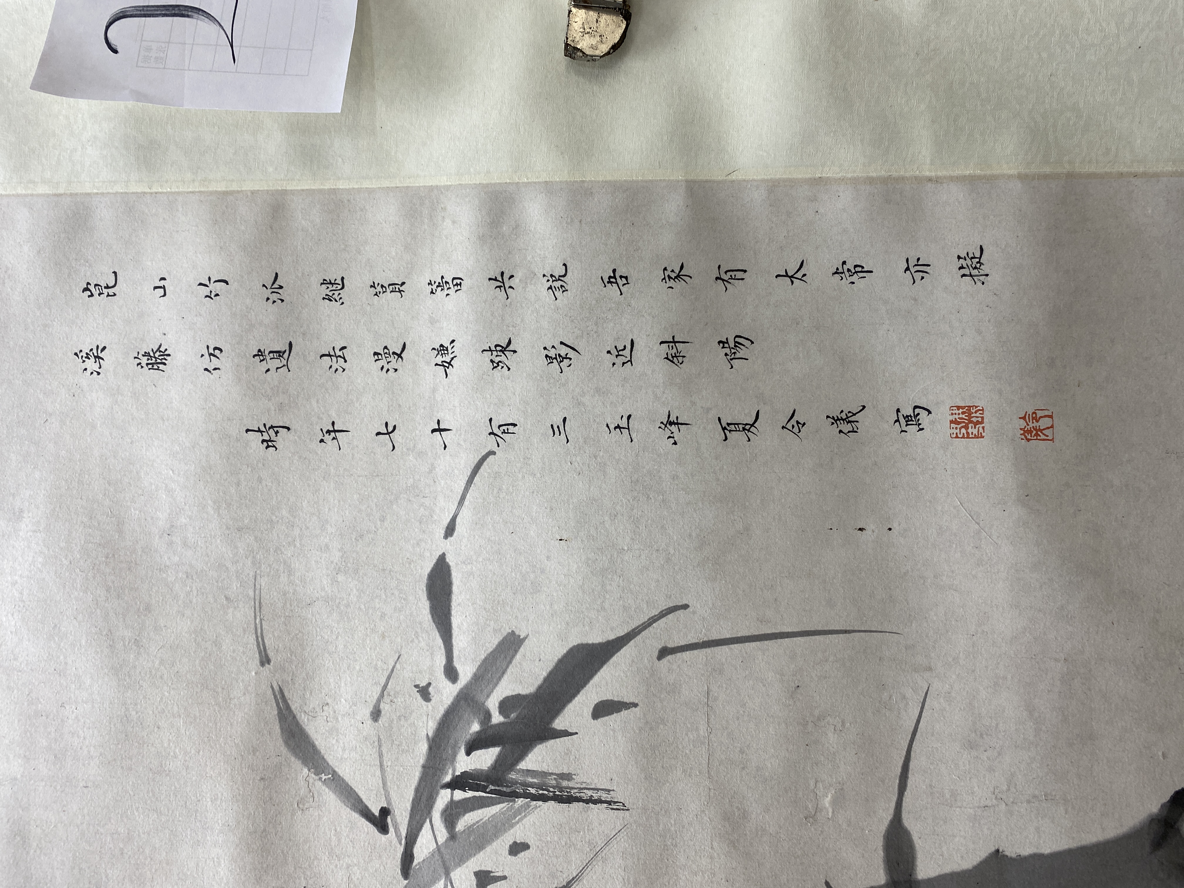 夏令儀(1797-?)字行素,號玉峰,又號鹿城女史。江蘇崑山人。畫竹蘭名家夏翬女。承家學,亦工畫水墨蘭竹,極得父法。細竿繁葉,往往坡石之間三五叢墨竹,頗現生機。書法亦秀整清挺,一派閨閣之氣。