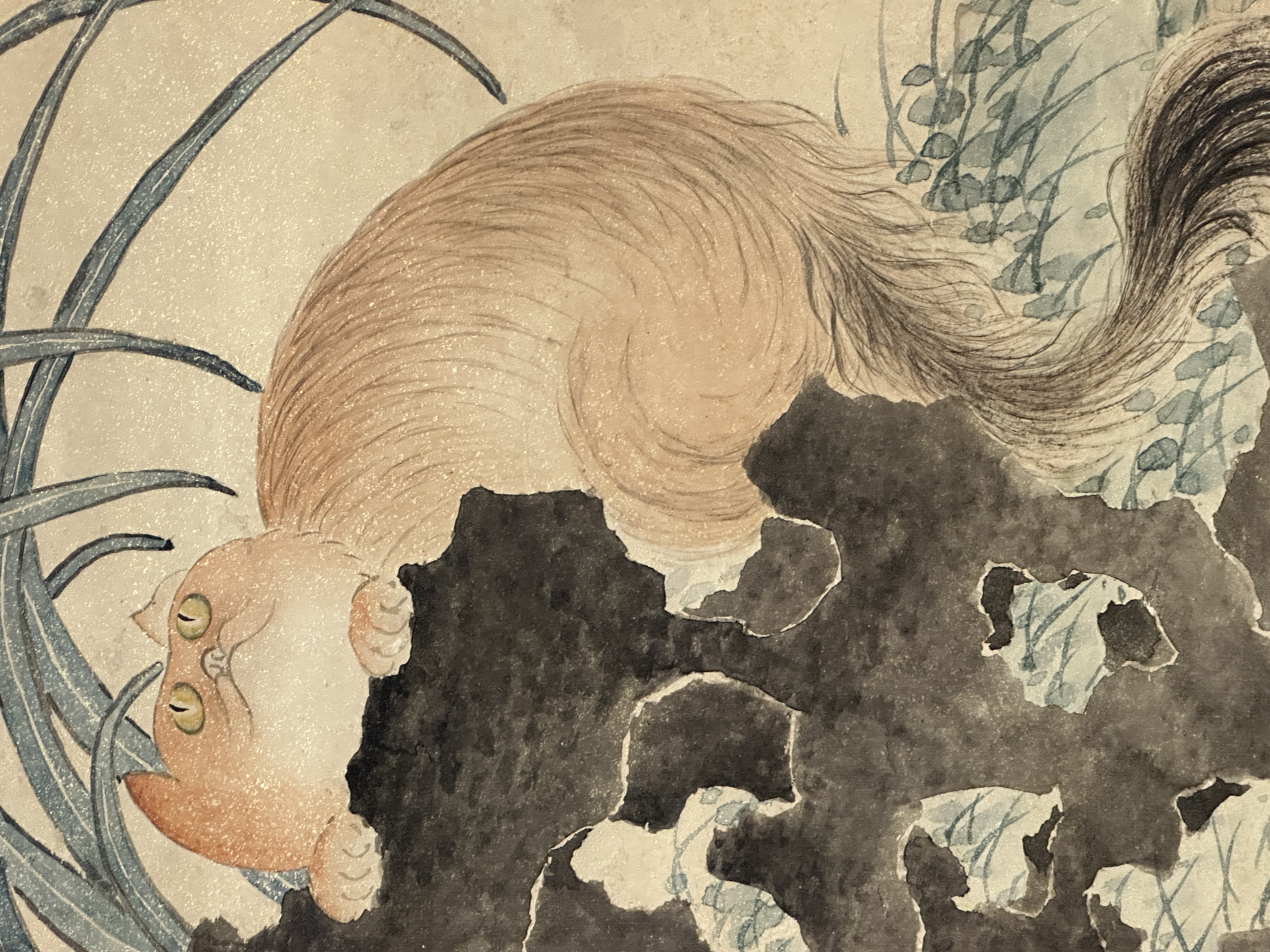 孫承恩(1485-1565)明人,字貞甫,號毅齋,松江人,正德六年進士,官至禮部尚書,諫文簡。書法遒動,無織媚志。參以古意猶多,遊戲丹青,亦善畫人物仕女。著有歷代帝王像贊傳於代。此作曾經吳湖帆、潘靜淑夫婦收藏,畫右下角鶴「湖帆靜淑藏」白文印一方。觀此印風格,當為近代篆刻大家陳巨來所為,但查「吳湖帆印鑑」及《安持精舍印叢》均未得見,蓋少有鎢用,世人所見無多之故,今此露瞼,可作有益的補充。