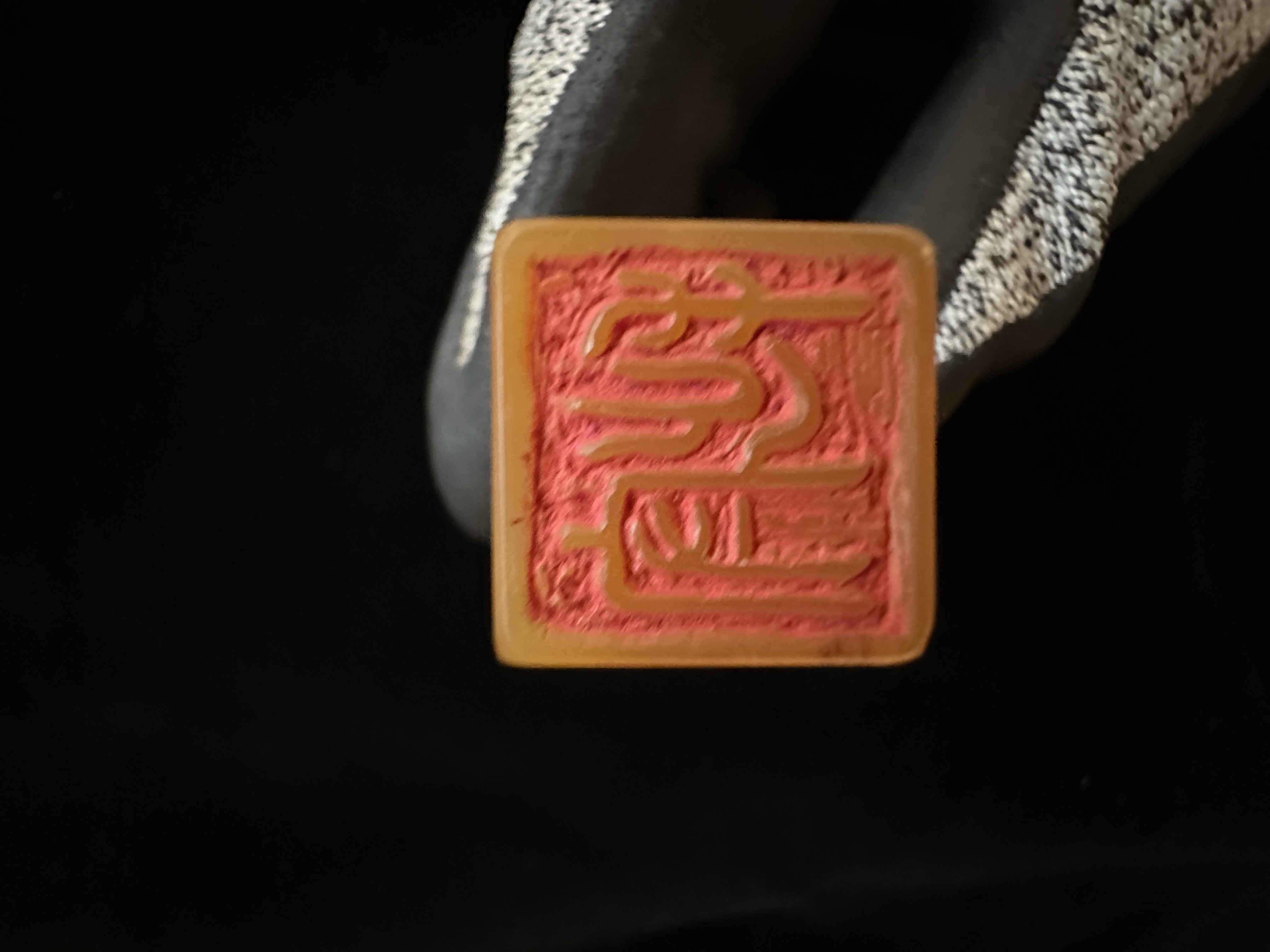 這五顆巴林石章料展現葉蠟石典型細膩凝脂質地,以黃色為主調並局部帶紅或獸形雕飾,產自內蒙古巴林右旗,硬度適中透明度高,非常適合篆刻印章。 第一顆為細長斜柱形,淺黃基底上端紅色浸染似辰砂脈,綿軟光潤適小型印紐;第二顆極細黃柱,純黃蠟潤無紋,屬黃凍類理想精細雕琢;第三顆矮方柱,淺黃平滑細膩適合印面原料。 第四顆蹲坐狗形鈕,通黃雕狗頭身尾翹活潑,寓吉祥鎮宅,印面刻有「守拙」;第五顆高柱獅鈕,黃色獅頭鬃毛捲曲蹲姿威猛,象徵百獸之王石質油亮適高鈕章。